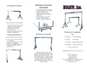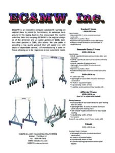 Explore the brochure library from EC&MW to learn more about our portable aluminum gantry crane systems, lifting solutions, and engineering standards. This page provides downloadable brochures and technical resources that highlight product features, specifications, and applications across industries such as: